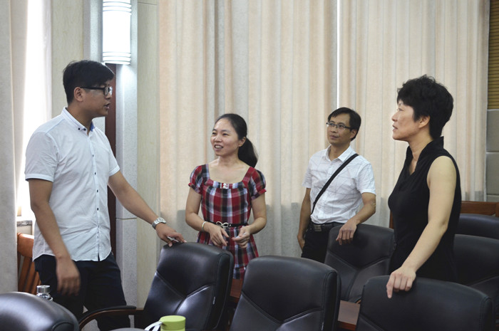 曾文(wén)副調研員(yuán)一行與錢副院長(左一)及鄭助理(右一)討論微課設計相關問題