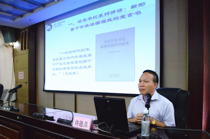 中共廣西區委黨校領導力拓展(zhǎn)部許(xǔ)進品教授為我校全體黨員上專(zhuān)題黨課