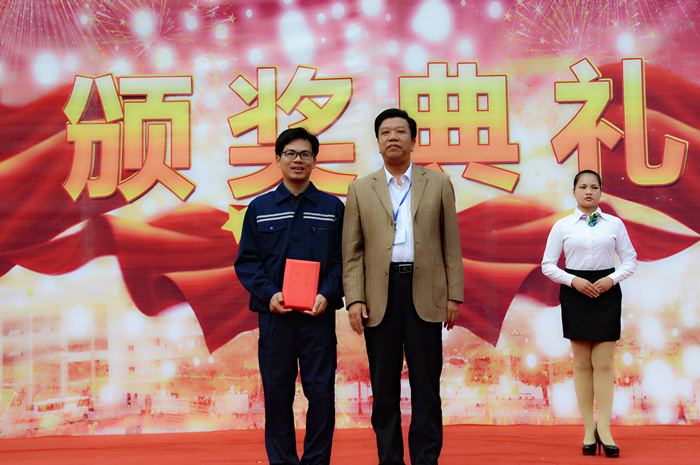鍾(zhōng)修仁院長為第五屆廣西技工院(yuàn)校技能大(dà)賽我院獲獎教師(shī)宋慶營頒獎