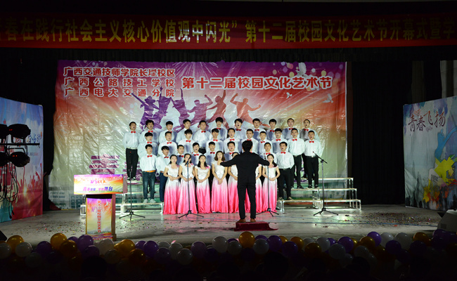 12月9日晚,廣西交(jiāo)通技師學院長(zhǎng)堽校區(廣西公(gōng)路技工學校)在該小(xiǎo)區禮堂舉行(háng)“讓青春在踐行社會主義核心價值觀中閃光(guāng)”第十二屆校園文化藝術節開幕式暨學生合唱比賽。