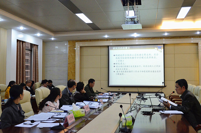 本次會議,主(zhǔ)要對2015年立項研(yán)究(jiū)的“以‘長風模式’建設物流一體化教室”、“企業元素植(zhí)入教學活動——動漫專業校企合作機(jī)製建設與課程體係開發探索與研究”等12個(gè)申請結題項目進行驗收評審。會上各項目代(dài)表分別匯報了項目研究情況及取得的成果(guǒ),專家組(zǔ)通過現場答辯的形式,對項目進行客觀細致的評審。最終,經過五位評審(shěn)專家的合議,本次12個校內科研項目全部通(tōng)過驗收評審。