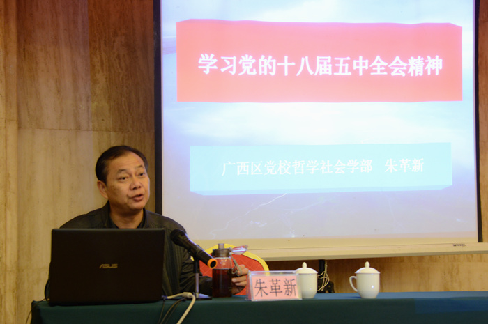 自(zì)治區黨校哲學部副主任朱革新授課