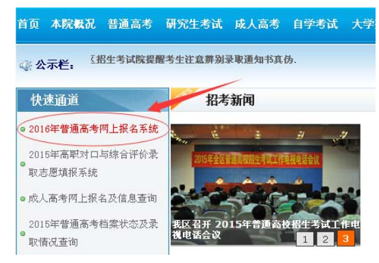 “快速通道”欄內“2016 年普通高考網上報名係統”