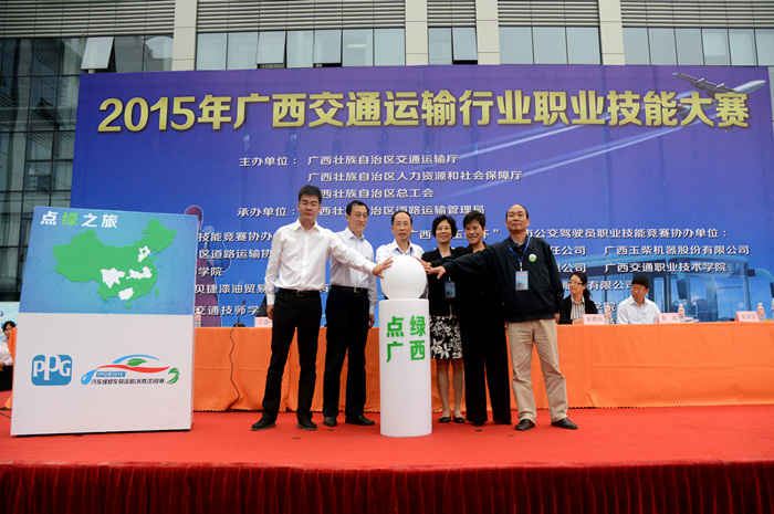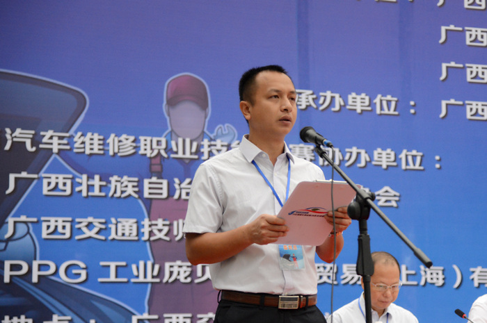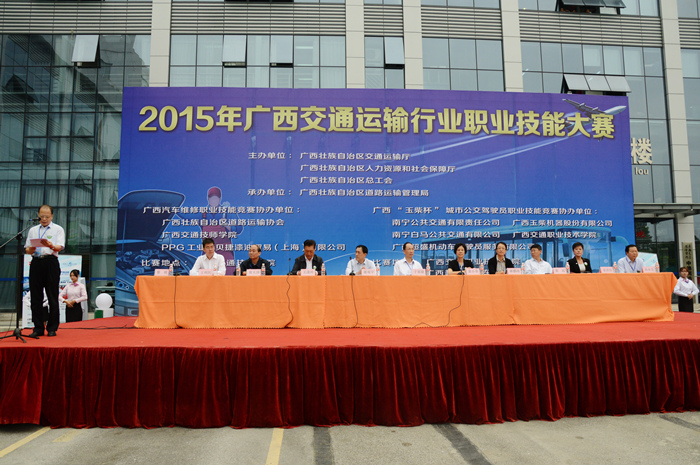 10月13日上午,2015年91.com運輸行業職業技能大賽在我院舉行,自治區人力資源和社會保(bǎo)障廳巡視員於祖毅、自治區交通運輸廳副(fù)巡(xún)視員黃小幸、中國海員建設工會(huì)全國委員會公路運輸部部長謝觀宇(yǔ)、廣西玉柴(chái)機器股份(fèn)有限公司副總裁王利民(mín)分別在開幕式上致辭。出(chū)席開幕式的其他領(lǐng)導還有交通運輸部職業資格中心副處長郝鵬瑋、中國汽車維修行(háng)業協會副秘書(shū)長王逢玲、PPG工業汽車修補漆及(jí)輕(qīng)工業塗料亞洲區副(fù)總裁袁潔儀、自治區人力資源(yuán)和社會保障廳職業能力建設處處長張遠、自治(zhì)區道路運輸(shū)管理局局長黃天國等。開幕式由自治(zhì)區交通運輸廳代表工會主席黎明主持。