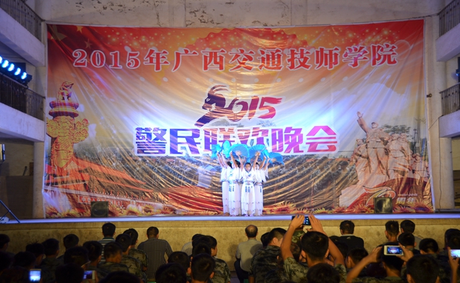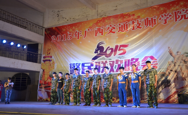 9月8日晚,我院高峰校區在體育館舉辦了2015年高峰校區警民聯歡晚會,學院黨委書記羅華、組織人事處主任李毅、高峰校區主任陸佳、廣西武警總隊一支隊排長胡天添、學生管理副主任覃甫、教務與科研(yán)處副主任張亮前、團委書記李薑春、長堽校區團委副書記盧樹誌、高峰校(xiào)區(qū)2015級新生(shēng)及教官觀看了晚會。