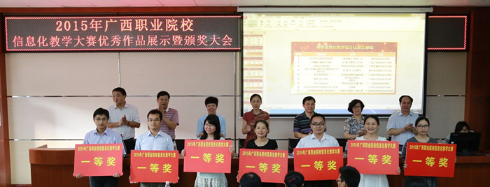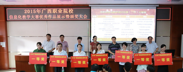 6月28日下午,由廣西教育廳主辦,廣西高校教育技術專業委(wěi)員會和廣西經貿職業技術學院承辦的2015年廣西職業院校信息化大賽,在廣西經貿職業技術學院(yuàn)頒獎大(dà)會落下帷幕。我校淩雪瑩(yíng)、何洪亮代表我院獲獎教(jiāo)師參加頒獎(jiǎng)儀(yí)式。