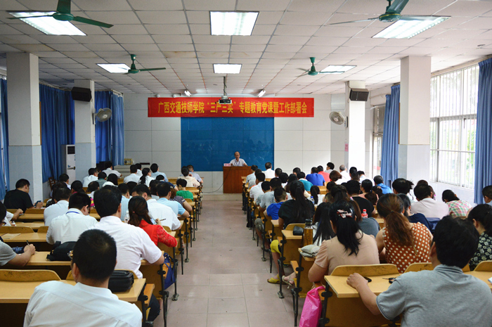 63日下午,我院在學院階梯教室召開“三嚴三實”專題黨課暨工作部署會議。黨委書記羅華以“深入開展‘三嚴三實’專題教育  用作風建設的新成效開創學院發展新篇章”為題,為(wéi)學院全體中層以上領導幹部(bù)、黨員上了一堂深刻而又生(shēng)動的(de)專題教育黨課,並對我院“三嚴三實”教育活動(dòng)做了工作部署講話(huà)。