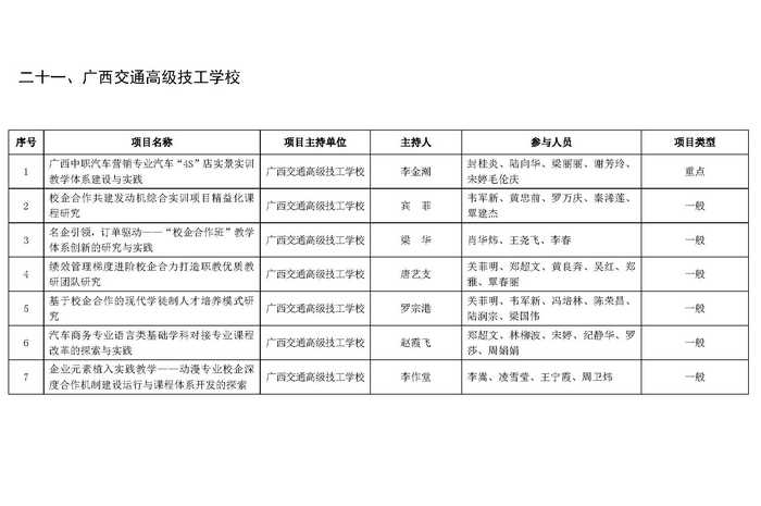 根據《關於公布2015年度廣西職業教(jiāo)育教學改革立項項目的通知》( 桂教職(zhí)成〔2015〕22號),我院申報的2015年度廣西職業(yè)教育教學改革項目(mù)有7項喜獲立項。