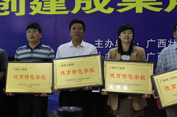 4月28日,廣西技工院校“德(dé)育特色學校”創建(jiàn)成果展示交流活動在廣西經貿高級技工學校舉行,活動由區人力資(zī)源(yuán)和社會保障廳主辦,由為獲得“德育特色(sè)學校”的11所(suǒ)技工(gōng)院校進行頒獎、“德育特色學校(xiào)”創(chuàng)建成果現場展示、創建“德育特色學校(xiào)”典型案例(lì)介紹、德育課課改(gǎi)示範課及觀摩學生管理工作和校園文化活動等五(wǔ)個內容組成。我院鍾修仁院長、信息(xī)與商務係謝毅鬆副主任、學生工作處梁勇(yǒng)副主(zhǔ)任、院團(tuán)委李薑春(chūn)書記及相關德育教師出席參加。