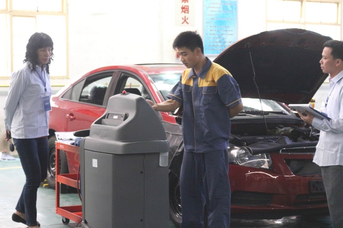 本次比賽項目包含團(tuán)體賽和個(gè)人賽共5項:汽車(chē)維護和車輪定位;汽車維修基本技能;車身修複(fù)(鈑金);車身塗(tú)裝(塗漆);汽車空調維修。其中:汽車維護和車輪定位為團體賽,其餘4項為個人賽。比(bǐ)賽分為理論考試和實操比賽兩部分,理論考試成(chéng)績占總成績的20%,實操比賽占總成績的80%。