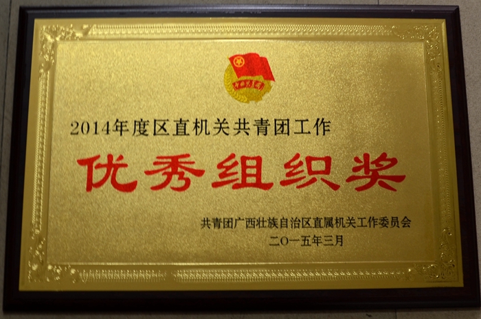 此次表彰由共青(qīng)團(tuán)廣西壯族自治區直(zhí)屬機關工作委(wěi)員會組織進行,共授予5個單位團組織(zhī)2014年度區直機(jī)關共青團(tuán)工作“最佳組織獎”,18個單位團組織2014年度區直機關共青團(tuán)工作“優秀組織獎”榮譽稱號。
