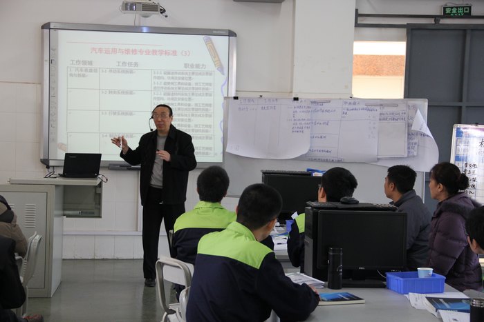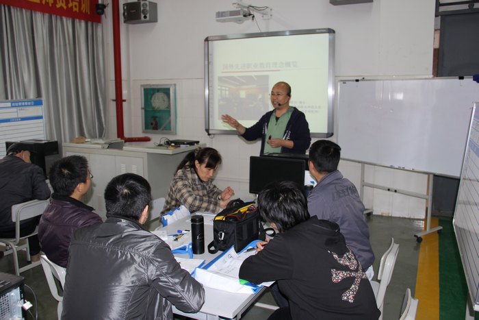121521日,由我(wǒ)院和上海(hǎi)景格科技股份有(yǒu)限公司協辦,上海現代經濟管理進修學院承辦的2014年全國交通中等職業教育汽車專業骨幹教師“理實一體課程設計與教學實施”培訓(xùn)班(bān),在我院實訓大樓三樓汽車(chē)實訓中心舉辦。參(cān)加培訓的老師來自(zì)武漢市(shì)交通學校、牡丹江市職業教育中心學校、河源市高級(jí)技工學校、南寧(níng)職(zhí)業技術學院(yuàn)和廣西機電職業(yè)技術學院等21所職業院校。廣(guǎng)西交通技師學院關菲明副院長、上海現代經濟管理進修(xiū)學院施肇基校長出席了開班儀式,上海景格科技股份有限公司(sī)田(tián)野項(xiàng)目經(jīng)理主持本次開幕式,並就本次全國(guó)汽修專業(yè)骨幹教師培訓的目的、意義及相關事宜等情況向參訓學員(yuán)進行了簡明扼要的介紹。