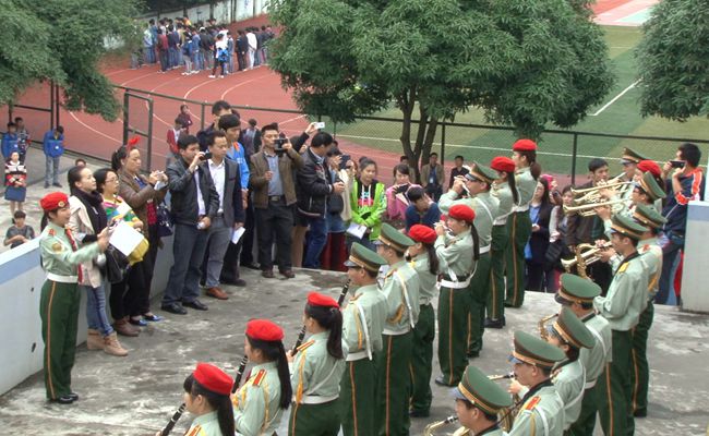 管樂隊成員為班主任們演奏《歡樂頌》