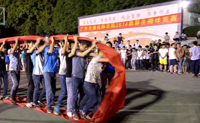 9月3日晚(wǎn)上七點半,在我院燈光球場舉行(háng)了(le)別開生(shēng)麵的2014級新生(shēng)趣味競技(jì)(同舟(zhōu)共濟)比賽。此次(cì)比賽,各班選出15名隊(duì)員參加。
