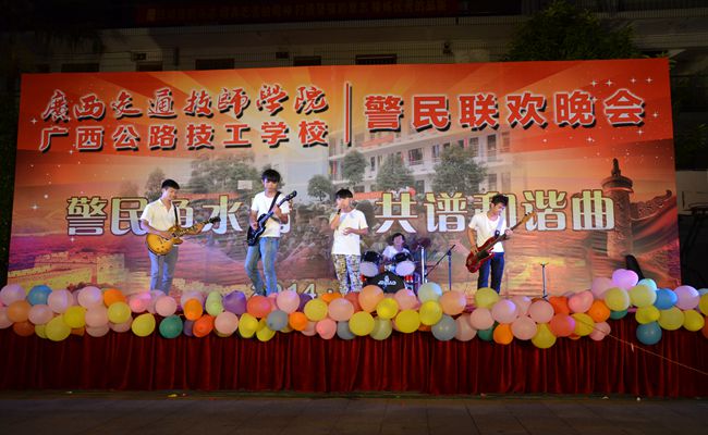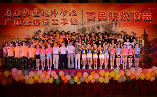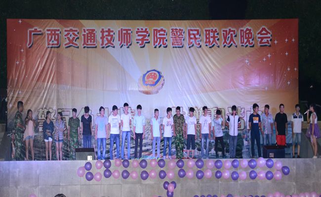 警民魚水情,共譜和諧曲。9月13日(rì)晚7點30分,學院燈光球場熱鬧非凡、歡歌笑語,由學院團委舉辦的2014年警民聯歡晚會在這裏隆重舉行,學院鍾修仁院(yuàn)長、武警一支隊覃(tán)振周隊長、我院所屬廣西公路技工學校副校(xiào)長張兵,學(xué)院學生工作處、新生班主(zhǔ)任、軍訓教官及2014級新生觀看(kàn)了本次晚會。