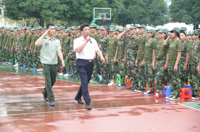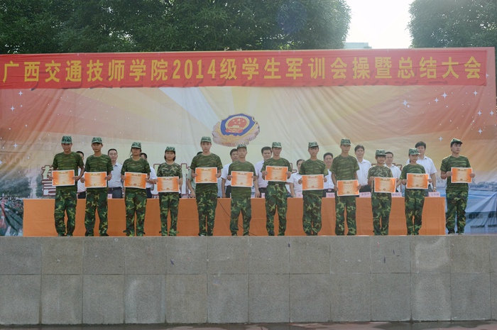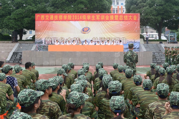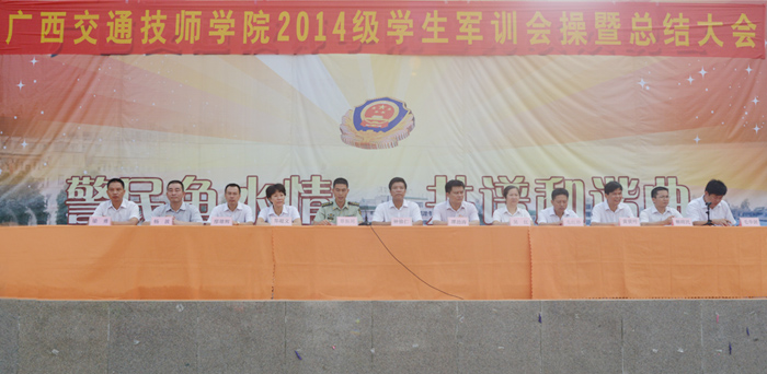 9月14日上(shàng)午,我院2014級學生軍訓會操暨總結大會在學院本部操場及高峰校區操(cāo)場舉(jǔ)行。學院院長鍾修(xiū)仁、廣西武警一支隊隊長覃振周、學院副院長關菲明、院長助理譚勁濤(tāo)、鄭超文以(yǐ)及學院部分中層領導出席大會。