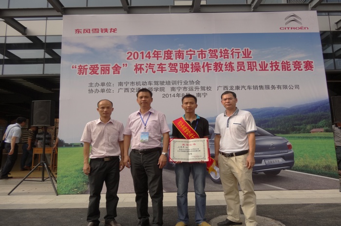 南寧市(shì)運升駕校(xiào)校(xiào)長潘敏春(chūn)(右一)與獲獎者合影