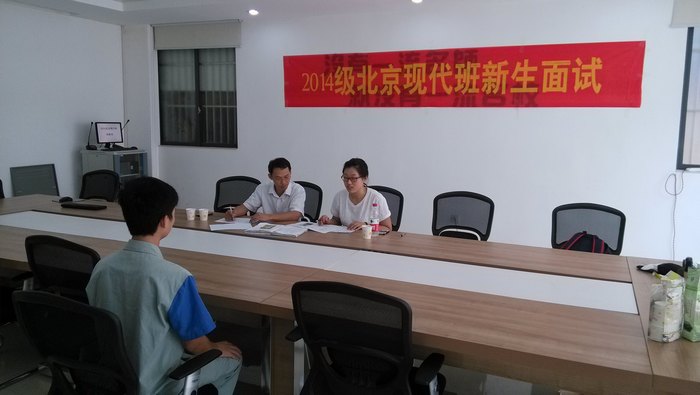 6月6日上午,2014級北京現代班新生麵試在大師工作(zuò)室展開(kāi),北(běi)京現代李翔女士主持進行選拔。