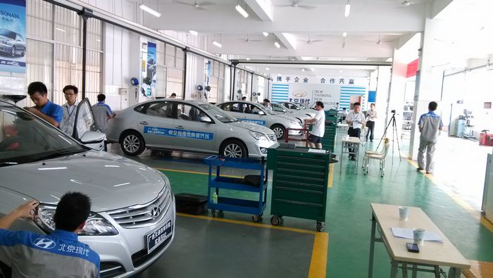 6月5日,我院應北京現代總公司要求邀請廣西鑫廣達、廣西(xī)通源、南寧(níng)全越3家4S店代表(biǎo)來校進行北京現(xiàn)代全國統一考核。北京現代總公司(sī)代表李(lǐ)翔女士主持考核工作,常州技(jì)師學院吳文龍老師參與指導工作。我院2013級北京現代班(bān)同(tóng)學以優異的成績完成了考核,順利拿到北京現代公司(sī)頒發的預(yù)備初級技師證書。