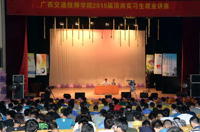 為了(le)讓我校2015屆實習生更好(hǎo)地了解我校的頂崗實習就業情況,了解企業單位對員工的招聘要求和實習生應(yīng)具備哪些素質(zhì)和技能等,514日晚,我校在(zài)學校禮堂舉行2015屆頂崗實習生就業(yè)講座,我(wǒ)校鍾修仁副校長和(hé)招生就業處主任楊波主(zhǔ)講,學生(shēng)工作處副主任梁勇主持。學(xué)校1100多名學生聽取了講座。