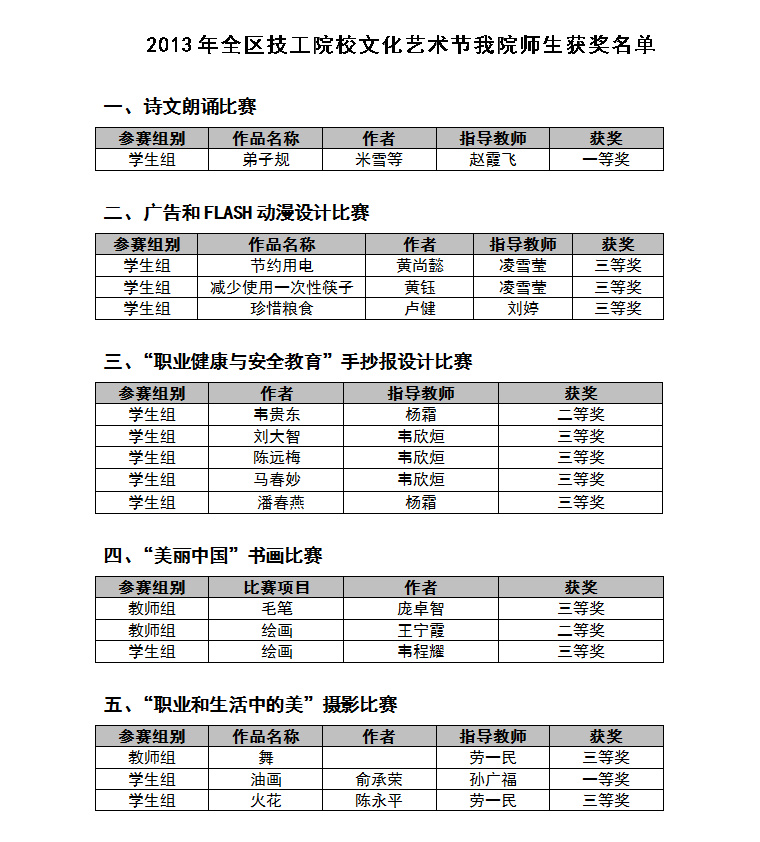 我院師生在2013年全區技工院校文化藝術節中再創佳績