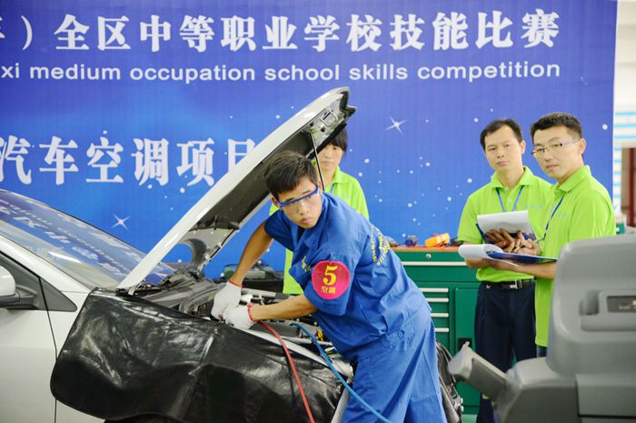 由羅(luó)宗港、潘利(lì)丹、趙文、劉小強等多位教師組成的訓練團隊積極備戰,經過層層選拔(bá)之後選定4位選手進行了嚴格的集中訓練。經過兩天激烈的角逐,我院(yuàn)2012級(jí)塗裝班林劍波(bō)、2011級電高3班陳暉邦(bāng)和(hé)2012級電高2班蒙堅傑分獲汽車塗裝技(jì)能競賽、汽車維修基本技(jì)能個(gè)人賽項目和(hé)汽車空調技能競賽第一名,2012級鈑中1班覃世軍(jun1)獲得汽車鈑金技能競賽(sài)第三名。此次全區(qū)中職技能大賽“汽車運用與維修”類競賽還(hái)作(zuò)為(wéi)全國職業院校技能大賽選拔賽賽(sài)項,我院3位獲得第一名的學生已獲得參加2014年全國大賽的資(zī)格,將在今年6月與全國其他(tā)省份的優秀選手同台競技(jì)。