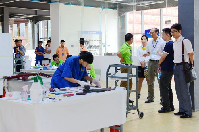 大賽組委會秘書處一行人實地(dì)察看汽車塗裝技能競賽現場