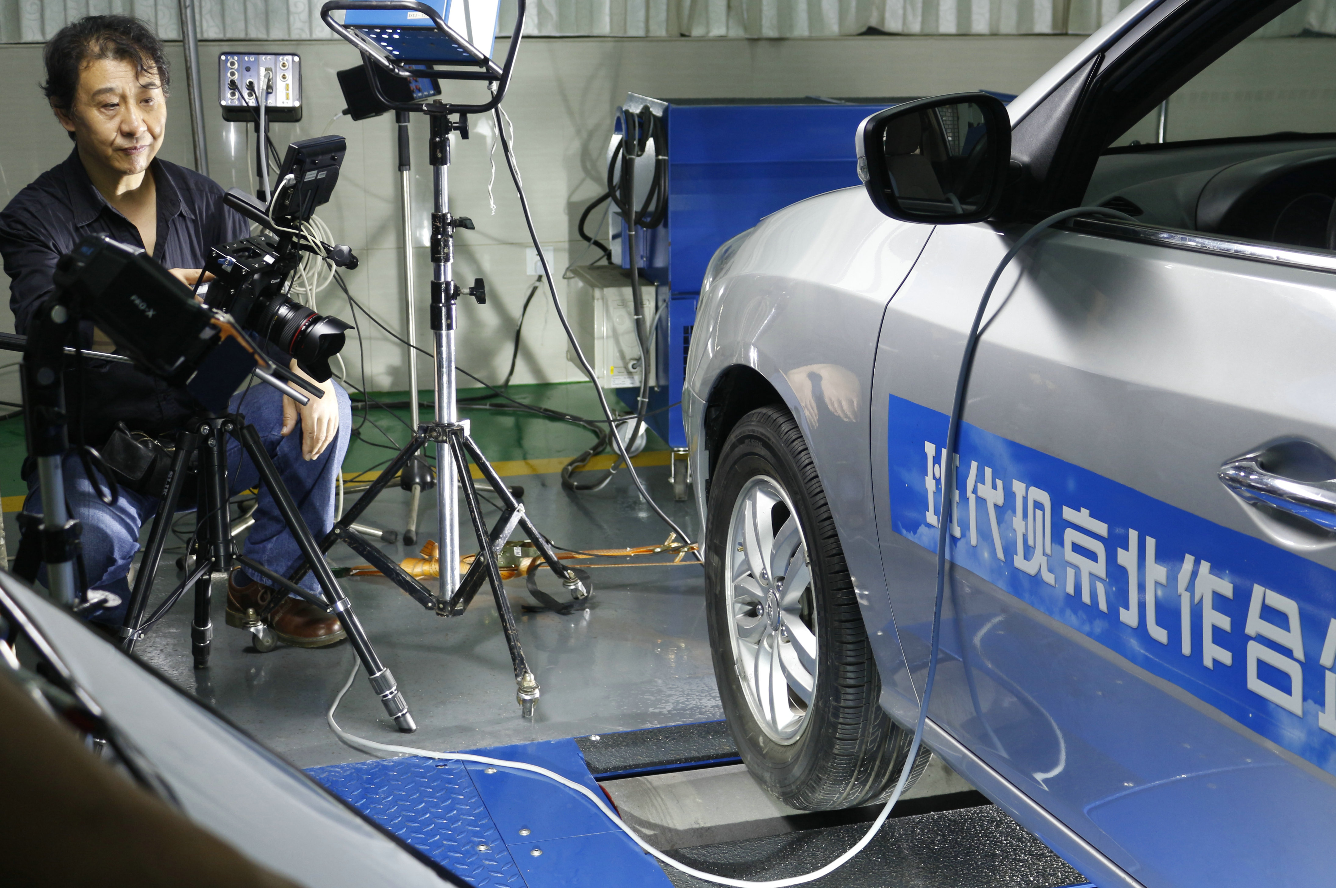 攝製組拍攝底盤(pán)測功儀運(yùn)作