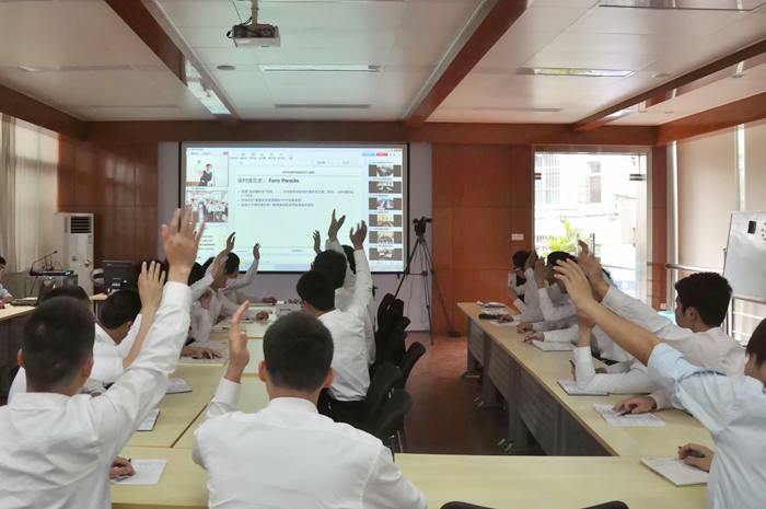 此次培訓,上海主會場(chǎng)利用網絡直(zhí)播授課,各分會場通過接收信號並(bìng)參與課程(chéng)互(hù)動,與其他院校進行網絡視頻遠程教學。保時捷(jié)(中國)講(jiǎng)師從保時捷曆史、車型及賽車(chē)運動等幾個方麵詳細(xì)地向同學們介紹了保時捷的品牌及其文化。通過教學視頻播放(fàng)、PPT展示、實車拍攝,互動答疑等環節與(yǔ)各院校同學進行交流,此次網絡(luò)授課教學模式新穎,深受學生們歡迎。
