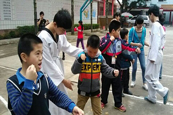 我校跆拳道協會在星(xīng)星學校開辦跆拳道興趣班