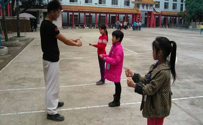 協會成(chéng)員給(gěi)孩子們做動作示範