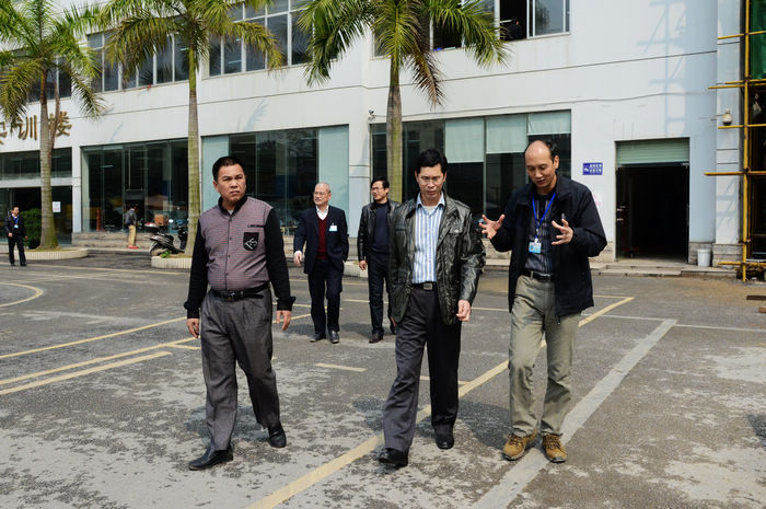 欽州市技工學校許家(jiā)全副(fù)校長(zhǎng)(右(yòu)二)與我院關菲明副院長交流汽車相關(guān)專業辦學經(jīng)驗