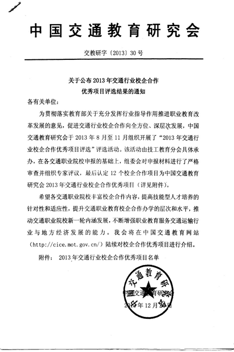 我院物流管理專業(yè)喜獲“2013年(nián)交(jiāo)通(tōng)行業校企合作優秀項目”