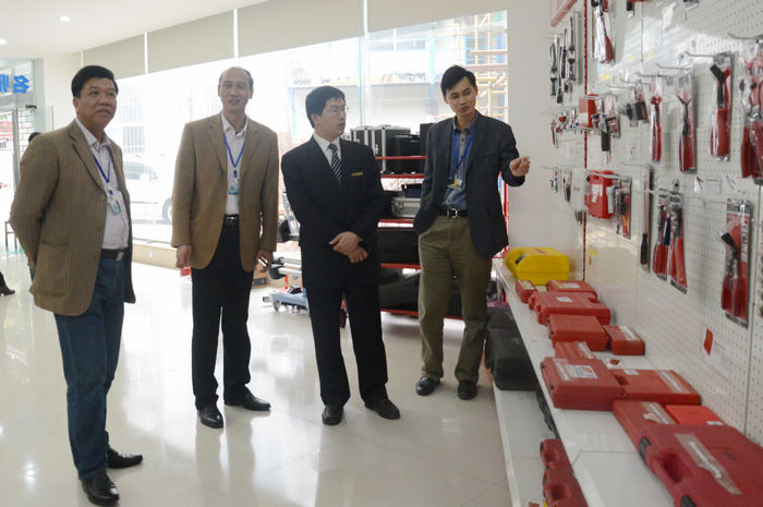 韋(wéi)紅(hóng)教院長向(xiàng)韋貴儒總經理介紹我(wǒ)院大師工(gōng)作室設(shè)備
