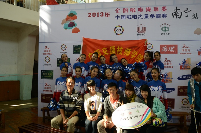 2013年全國啦(lā)啦操聯賽廣西分賽區(南(nán)寧站)比賽於11月2至(zhì)3日在廣西大學體育館舉行。來自全區大中專院校、中小學校、幼兒園等單位153支(zhī)隊伍,共計2859名選手對舞蹈啦啦操、健美操大眾標準、街舞健(jiàn)身操以及(jí)民族健身操等項目展開角(jiǎo)逐。
