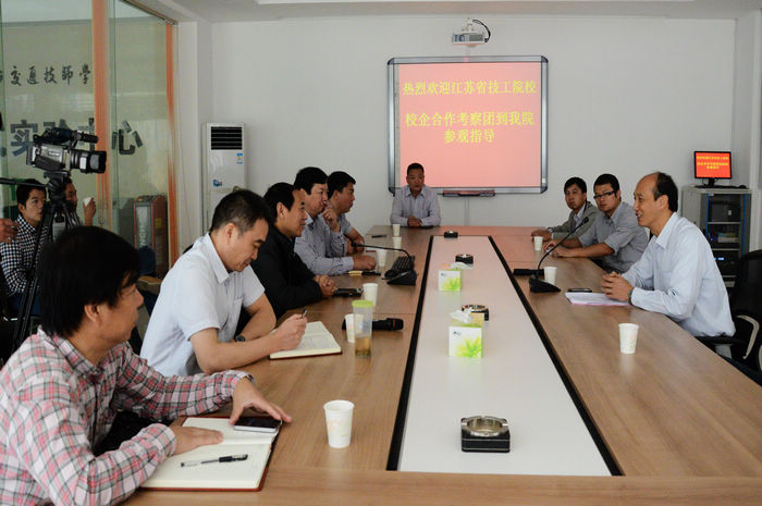10月19日(rì)上午,由南京交通技師學院、鹽(yán)城(chéng)技師(shī)學院、江蘇汽車技師學(xué)院等11所江蘇省(shěng)技(jì)工院校組成的考察團(tuán)到我院參觀交流。我院關菲明副院長熱情接待並陪同參觀,並就中職院校校企合作項目、教(jiāo)育教學管理等問題進行座談。
