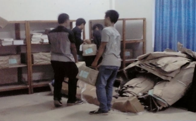 因(yīn)我院2013年秋季招生工作取得了曆史性(xìng)的突破,根據新製定的教(jiāo)學計劃,對教材采購、發(fā)放(fàng)工作帶來了巨大(dà)的壓力,在院領導、教務與科研處領導的領(lǐng)導下,學院圖書館工作人員加班加點(diǎn),合理調(diào)度,克服書庫場(chǎng)地限製、時間緊(jǐn)迫等各(gè)種困難,通過實行以(yǐ)下五(wǔ)個方麵措施,保障完成了2013-2014學年第一學期學院本部、高峰校區110個班級共4300多名(míng)的學生教材訂購、發放(fàng)工(gōng)作,教材到位率達98%以上,確保了學院下一步(bù)教學工作的順利開展