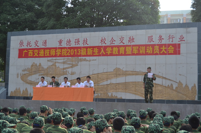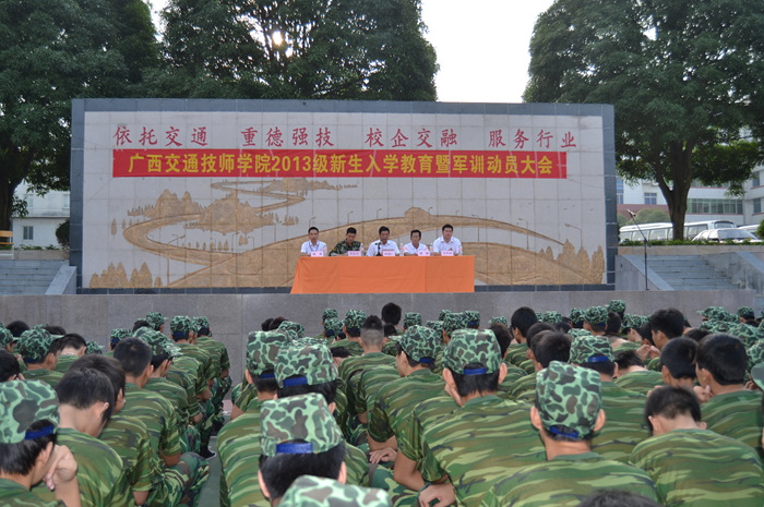 9月8日上午,我院2013級新生軍訓動員大會在燈光球場隆重舉行,學院鍾修仁副院長、廣(guǎng)西武警一(yī)支隊覃振周中隊長(zhǎng)及教(jiāo)官、各(gè)新生班級班主任和全體2013級新生(shēng)參加了本次大會。