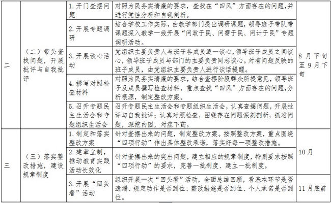 (二)帶頭查找問題,開展批評與自我批評(時間安排:8月(yuè)下旬至9月下旬)