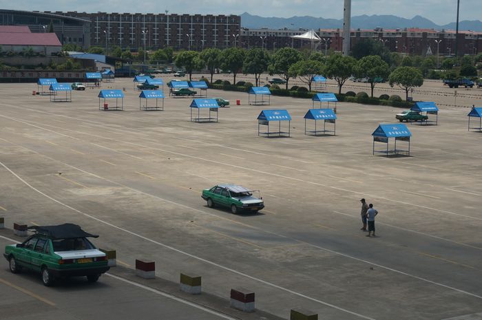 圖3:該校(xiào)駕駛訓練場(chǎng)一隅及教練(liàn)車上的特色“遮陽帽”