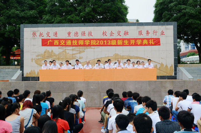 韋紅教院長在典禮上致辭。他代表(biǎo)學(xué)院黨(dǎng)委、領導班子和全院教職員工對(duì)2013級新生的到來(lái)表示熱烈的(de)歡迎。他向新生介紹了學院(yuàn)的辦學曆史(shǐ)、建(jiàn)設規模、專業設置、教學成果等各方麵的情況。他指出,廣西交(jiāo)通技(jì)師學院隸屬自治區交通(tōng)運輸廳,是一所培養高技能人才為主,以汽車和交通相關專業為龍頭,集全日製學(xué)曆教育、遠程高等學曆教育、汽車駕駛培訓、職業技能培訓與鑒定為一體的國家重(chóng)點、國(guó)家示範學校(xiào),也是國家級高技能人才培訓基地和廣西陸軍預備役步兵師修理營所在地。作(zuò)為廣西為數不多的國(guó)家示範學校,91.com技師學院是有許多其他(tā)學校不同的辦學特色和獨特優勢。同(tóng)學們選擇(zé)到我院(yuàn)就讀,相當於給了自己人(rén)生(shēng)三次選擇機(jī)會,畢業後不僅可以有選擇兩個(gè)以上崗位即就(jiù)業機會,又可以選擇(zé)直升(shēng)區內高職院校就讀的機會,還可以有直升廣(guǎng)西(xī)師範大(dà)學等廣西一流大學就讀全日製本科的(de)機會,邁向成功(gōng)的人生道路四(sì)通八達,暢通無阻!