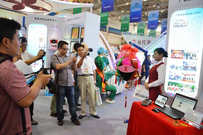 此次展洽會以“展示現代職業教育體係建設成果,為全麵建成小康社會培養技術技能(néng)人才”為主題,內容包括綜合展示、專項展示和開展合作開發、技術轉讓等多種形式的洽談(tán)活動,以及作品有償推介活動等。為借此次機會充分展示我院多年來(lái)的教(jiāo)育教學成果,學院領導十(shí)分重視,韋紅教院長親臨展洽會現場指導工作,並指(zhǐ)派專人負責相關事宜,多次強調參展的重要性,鼓勵學生發揮日常所學,將創(chuàng)新思維與專業技能有機結合。學生(shēng)充分利用課(kè)餘(yú)時間,在專(zhuān)業(yè)老師的指導(dǎo)下,結合我院專業特點和自身的技術專長,完成(chéng)了一件件設計新穎、做工精細、特色鮮明的作(zuò)品,獲(huò)得了全國(guó)各兄弟院校的肯定,贏得展洽會評委的好評。
