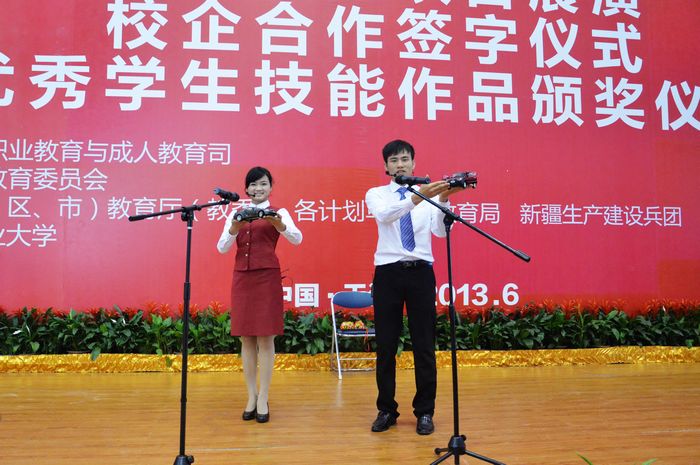 62628日,2013年全國職業院校(xiào)學生(shēng)技能作品展洽會(簡稱“展洽會”)在天津國際經濟(jì)貿易展(zhǎn)覽中心舉行,中共中央政(zhèng)治局委員、國務院副總理(lǐ)劉延東出席此次展洽會,並現場(chǎng)觀看了全國各職業院校學生參賽作品和技能展示。