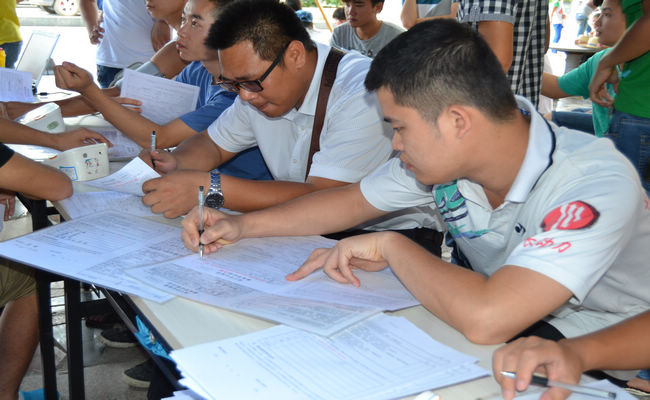 圖三:教師與(yǔ)學生們正(zhèng)在排隊等候獻血