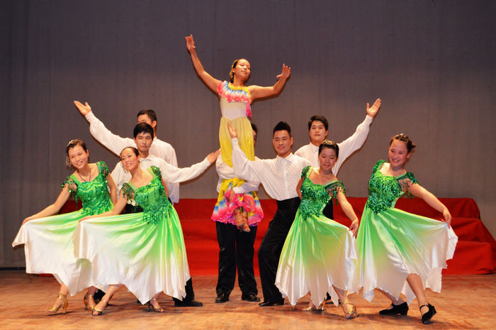 圖(tú)三:團委老師與學生(shēng)代表為比賽獻上(shàng)舞蹈《愛的傳遞》