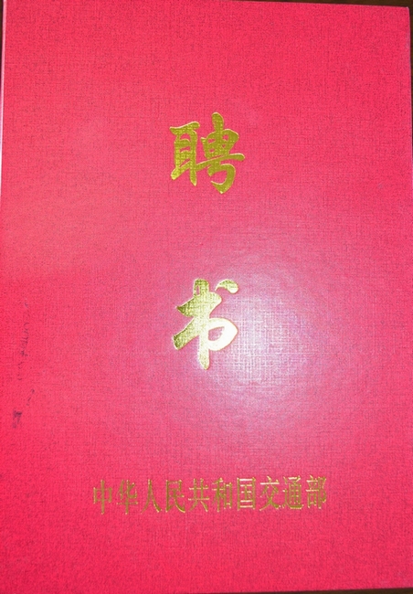 圖(tú)一:中華人民共和國交通部頒發給我院關菲明副院(yuàn)長的聘書封麵