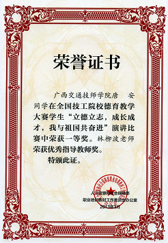 通過3個月的精心準備,曆經全區評比推薦,全國決賽等環節的層層角(jiǎo)逐,我校師生在全國技工院校德育教(jiāo)學大賽中成績異常突出:學院獲優秀組織獎;在演講比賽項目23個一等(děng)獎中斬獲2名;德育課教學案例設計比賽項目5位老師中4位獲獎(jiǎng)。具體獲獎情(qíng)況如下(xià):
