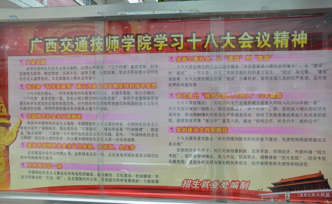 圖8:招生就業處(chù)展板——學(xué)習黨的(de)十八大精神(shén)