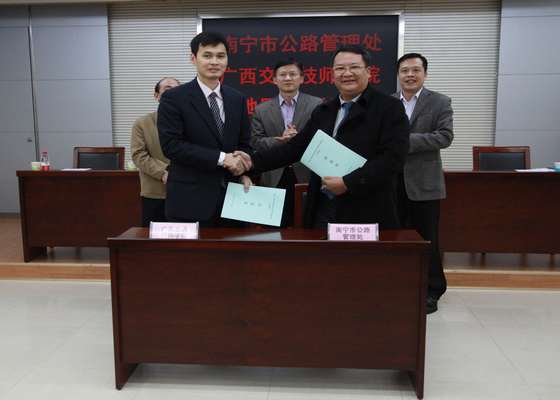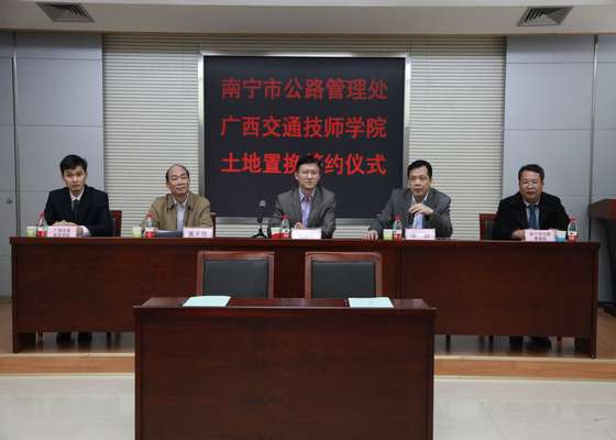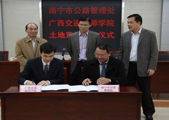 2012年12月10日,在自治區交通運輸廳黃(huáng)汝生副廳長、自治區道路運輸管理局黃天國局長、南寧市交通(tōng)運輸局李耕局長的共同見證下,我院(yuàn)韋(wéi)紅教院長與南寧市公路管理處何(hé)富(fù)全主任在南寧市交通運輸局二樓會議(yì)室(shì)簽訂了南武二級公路武鳴公路養(yǎng)護站土地置換(huàn)協議。協議約定(dìng),南寧市公路管理處將座落於武鳴縣(xiàn)伊嶺開發區小康村旁、位於我院伊嶺新校區規劃紅線內的南(nán)武二(èr)級公路武鳴段公路(lù)養護站(zhàn)土地共3335平方米(mǐ)及地上附著物整體移交我院使用,我院在伊嶺校區(qū)規劃(huá)生活用地範(fàn)圍內提供相應的土地給公路管理處。本協議的簽訂,為我院伊嶺校區的建設打下了堅實的基礎。