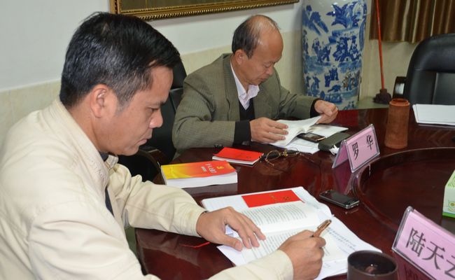 圖(tú)3:羅書(shū)記和陸副院長認真學習“報告”和黨章